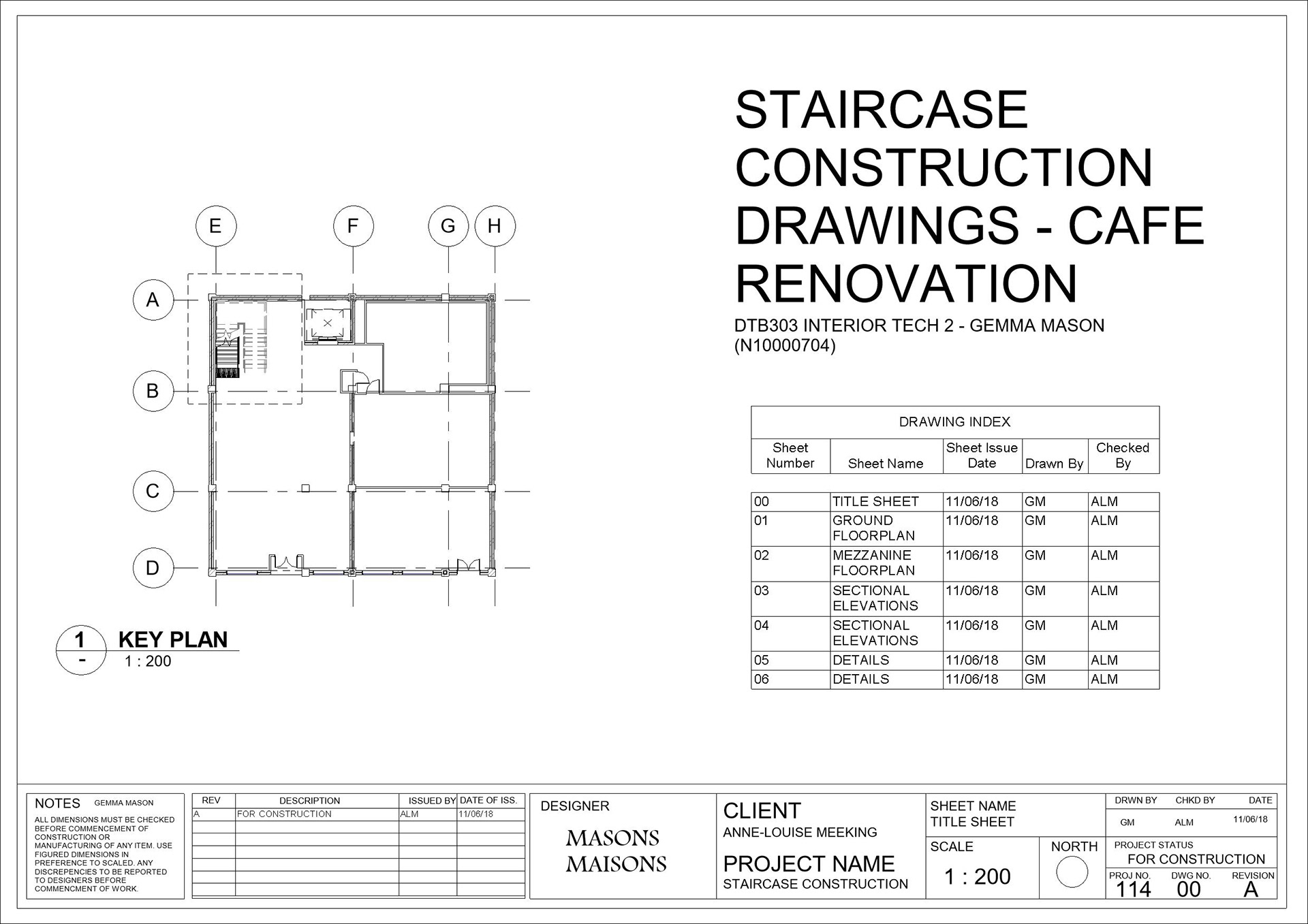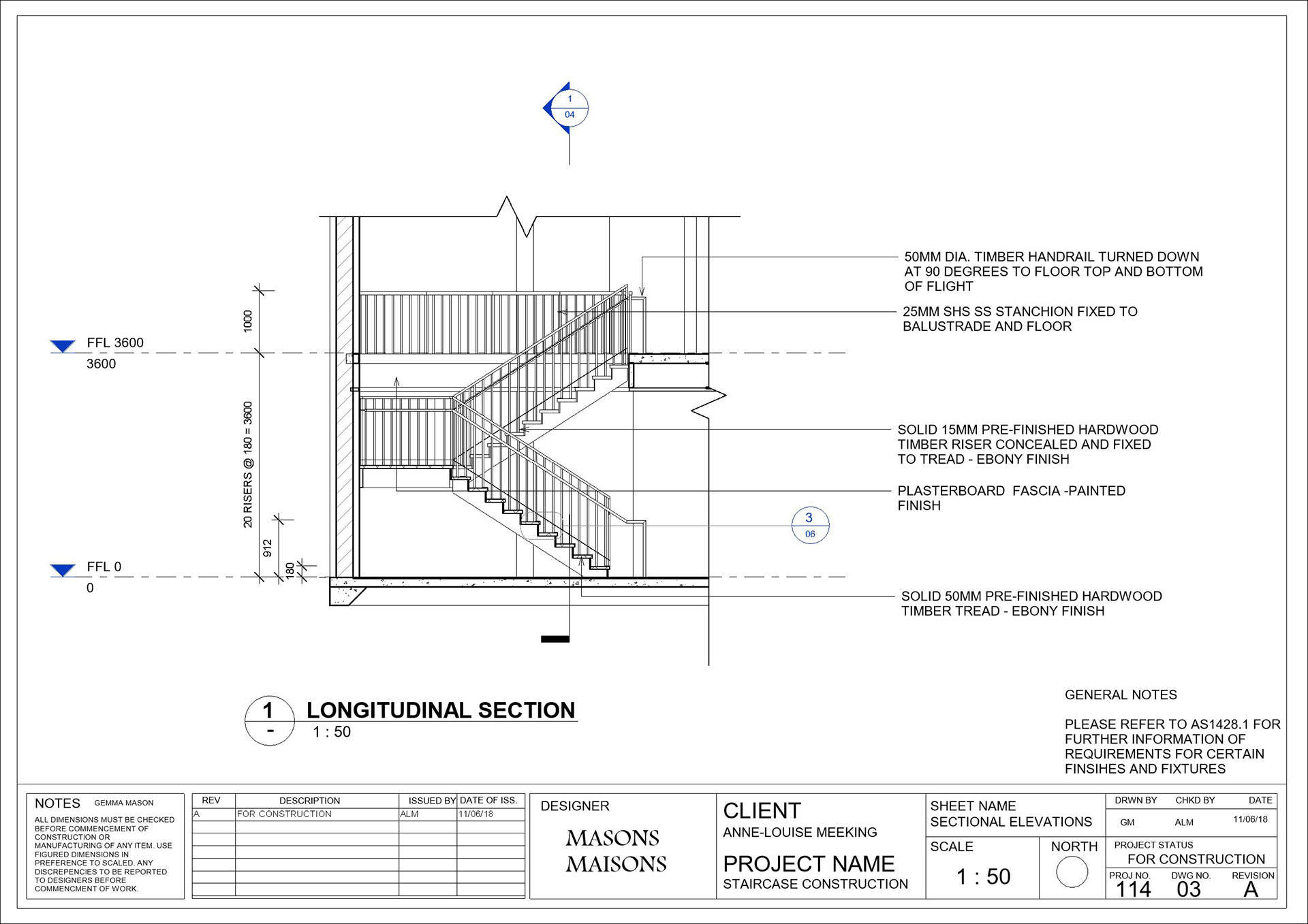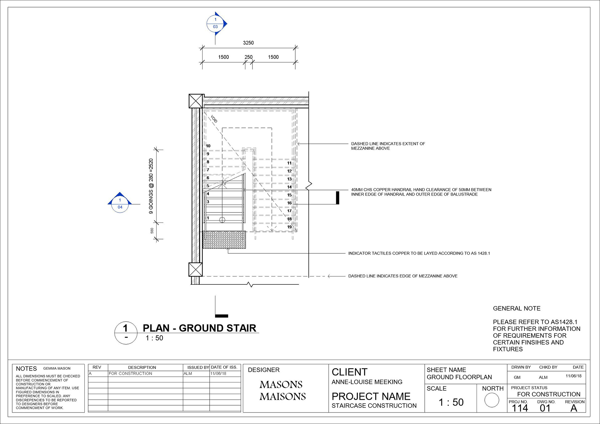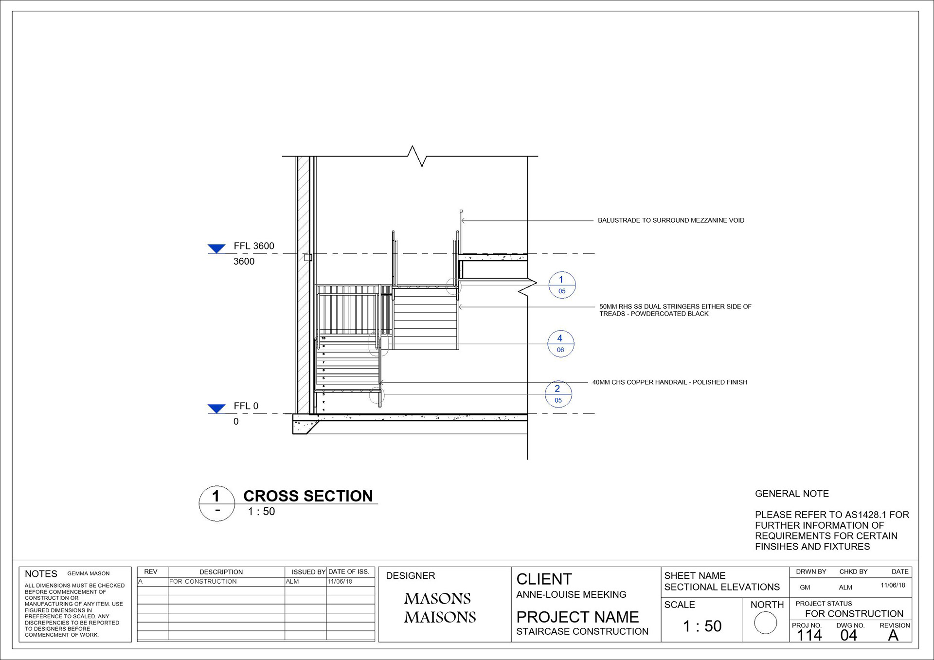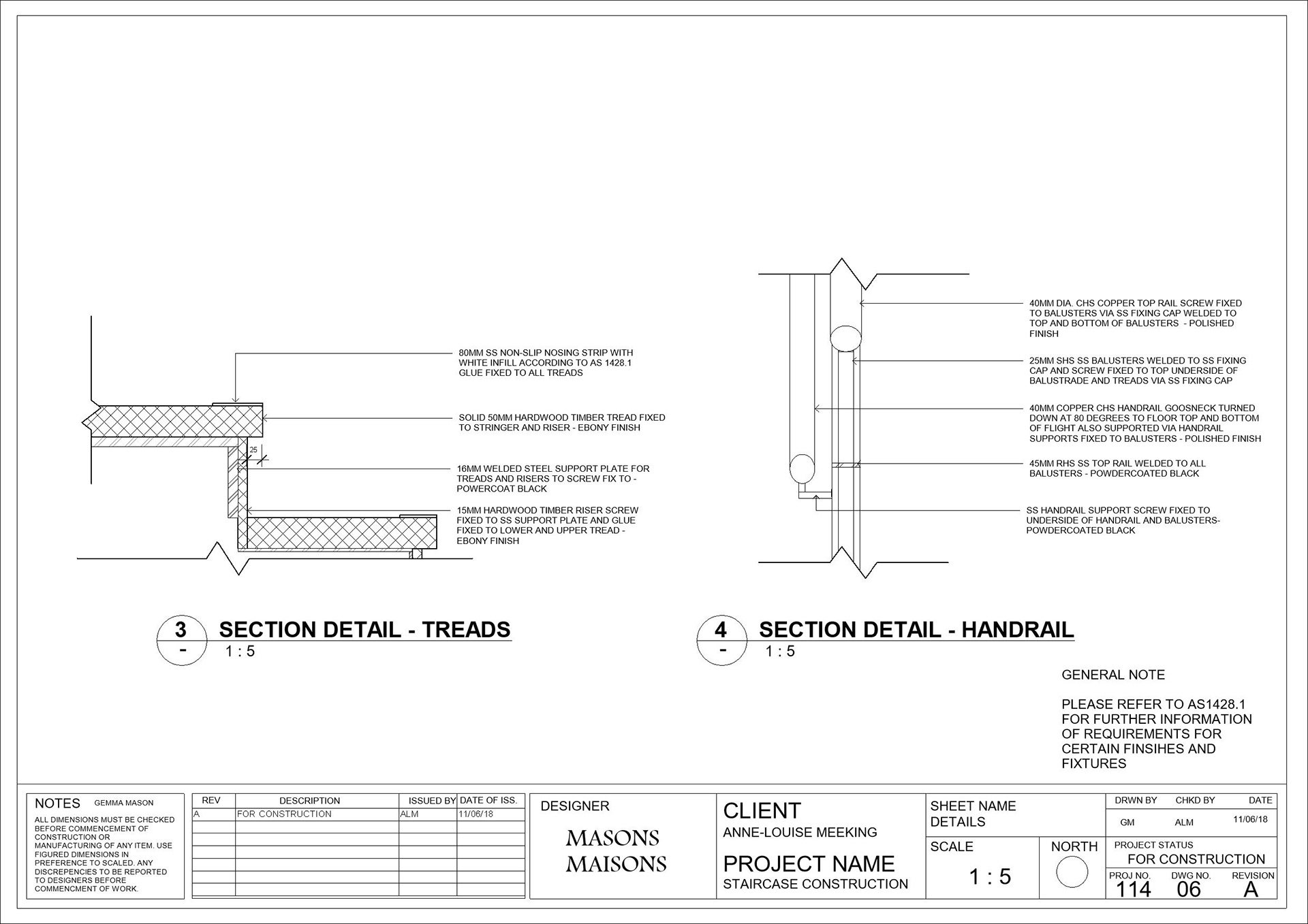 Part 3 of 3 | Third part of the construction documentation for the Cafe Reno, a commercial staircase linking the restaurant to the above mezzanine.